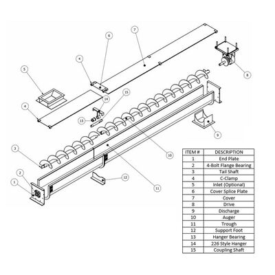 Thiết kế hố hình U:Cung cấp dung lượng cao hơn so với máy vận chuyển vít hình trụ truyền thống và cung cấp truy cập dễ dàng hơn để kiểm tra và làm sạch so với máy vận chuyển ống kín.